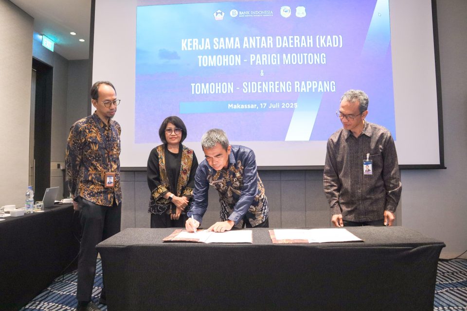 BASISBERITA.COM, Tomohon – Pemerintah Kota (Pemkot) Tomohon resmi menandatangani Kerja Sama Antar Daerah (KAD) dengan Kabupaten Parigi Moutong dan Kabupaten Sidenreng Rappang yang difasilitasi oleh Bank Indonesia (BI), di Makassar Sulawesi Selatan (Sulsel), pada Kamis (17/7/2025).