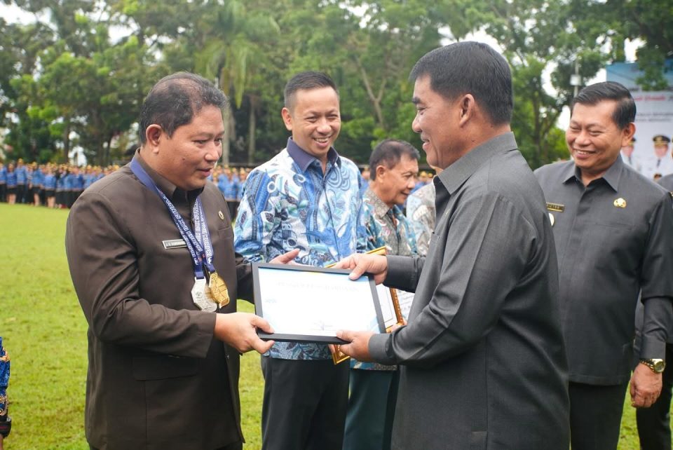 BASISBERITA.COM, Manado – Gubernur Sulawesi Utara (Sulut) Yulius Selvanus memberikan penghargaan kepada para pegawai Pemerintah Provinsi (Pemprov) Sulut, yang telah berhasil membawa pulang medali dalam Pekan Olahraga Nasional (Pornas) Korps Pegawai Republik Indonesia (KORPRI) XVII di Palembang.