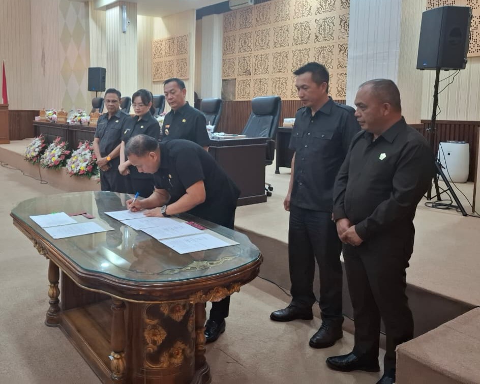 Penandatanganan nota kesepahaman tersebut dilakukan oleh Ketua DPRD Ferdinand Mono Turang, Wakil Ketua DPRD Jeffri Hany Polii, SIK, Wakil Ketua DPRD Donald Pondaag, serta Wali Kota Tomohon Caroll Joram Azarias Senduk, SH.