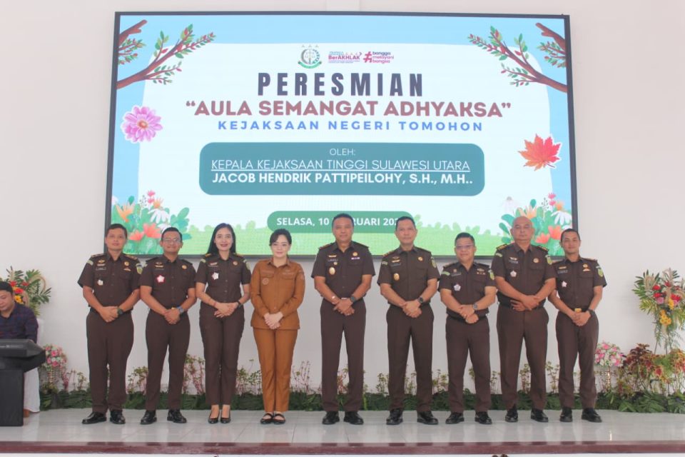 BASISBERITA.COM, Tomohon — Upaya peningkatan sarana penunjang kinerja aparatur penegak hukum terus dilakukan. Salah satunya melalui peresmian Aula “Semangat Adhyaksa” di Kantor Kejaksaan Negeri Tomohon, Selasa (10/2/2026).